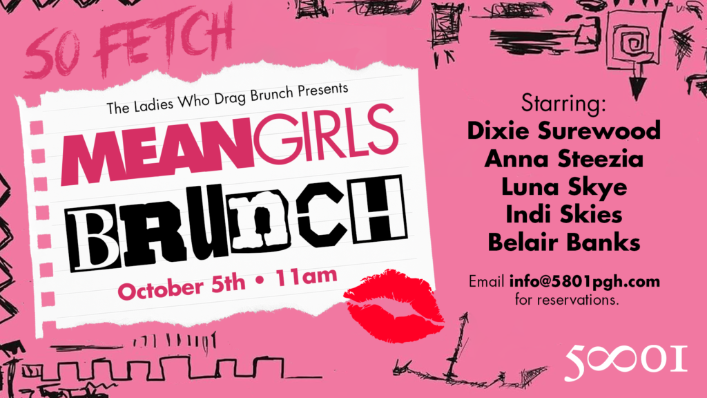 The Ladies Who Drag Brunch – Mean Girls Edition – will feature performances by Dixie Surewood, Anna Steezia, Luna Skye, Indi Skies, and Belair Banks on October 5th! Doors open at 11:00am. NO COVER! Show starts at noon.